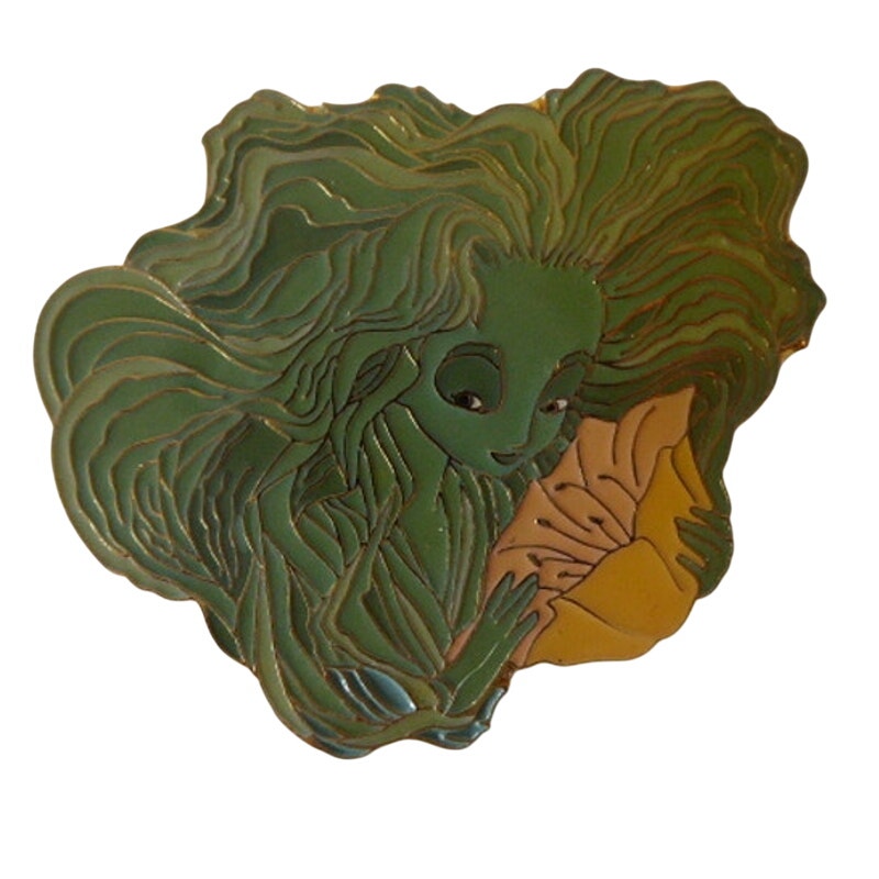 Sprite, left turned right, holds a light yellow and light pin flower in her arms. She is in various shades of turquoise. She is found in the Firebird Suite section of the film.