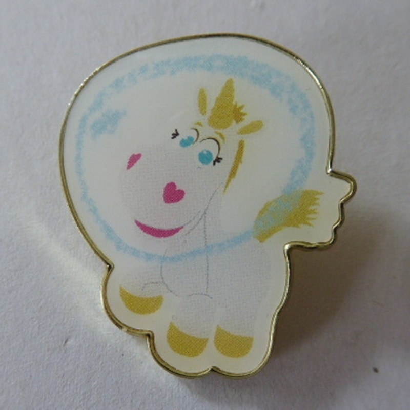 This pin features a smiling BULLSEYE THE HORSE walking to the left on a white background. There's a blue circle around his head which resembles a crayon drawing.