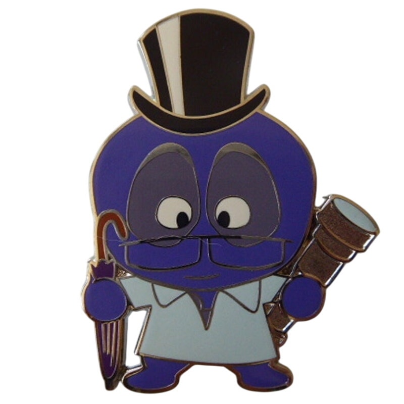 This listing is for the Thinkee as John Darling Silver finished pin. Thinkee is wearing John's top hat and clothes. Thinkee is also wearing glasses. Thinkee is holding John's umbrella in his right hand and a flashlight in his left hand. Thinkee has a blue body with a hidden mickey on his tummy.